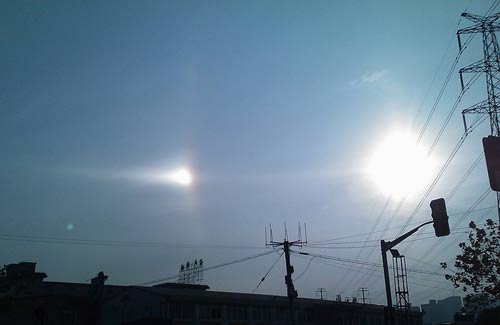 Hiện tượng ba mặt trời cùng xuất hiện trên bầu trời được nhiều người dân Trung Quốc gán cho lý thuyết ngày tận thế.