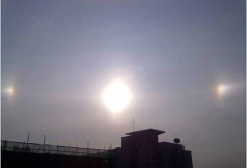 Theo trang tin 163 của Trung Quốc, sáng ngày 10/12, người dân sống ở thành phố Thượng Hải và tỉnh Giang Tô của Trung Quốc đều có thể chứng kiến cảnh tượng kỳ lại: ba mặt trời cùng xuất hiện trên bầu trời.