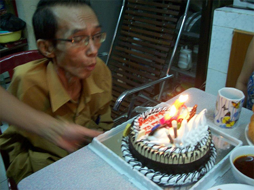 Hình ảnh NS Trần Thiết Hùng trong tiệc sinh nhật năm 2012, nhưng giờ đây ông đã là người