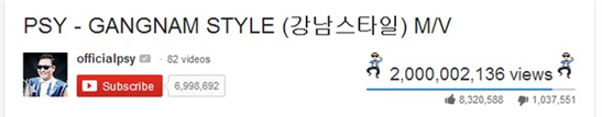Sau khi là video đầu tiên vượt qua mốc 1 tỷ lượt xem, Gangnam Style tiếp tục vượt qua con số 2 tỷ.