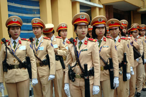 Các nữ CSGT tập hợp chờ lệnh xuất quân