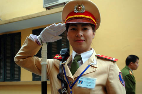 Nữ CSGT Nguyễn Thị Mây – đội CSGT dẫn đoàn, thuộc phòng CSGT Công an TP.Hà Nội tâm sự: “Mình nghĩ nữ CSGT tự tin khi làm nhiệm vụ này và sẽ cố gắng để làm tốt nhiệm vụ được giao như những nam CSGT đã và đang đảm nhận".