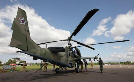 Trực thăng tấn công dưới mọi loại hình thời tiết thế hệ mới Ka-52 Alligator được thiết kế nhằm tấn công các mục tiêu dưới mặt đất và các mục tiêu bay với tốc độ chậm. Trực thăng được trang bị đại bác 30mm, tên lửa laser dẫn đường Vikhr (Whirlwind), rocket, trong đó có S-24 và bom.