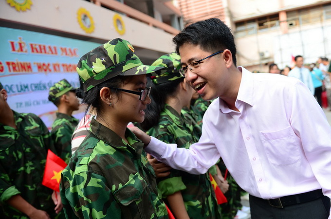 Sáng 12-7, 100 bạn thiếu nhi có thành tích vượt khó đạt thành tích tốt trong học tập đã ra quân tham gia “Học kỳ trong quân đội” tại Nhà văn hóa Thanh Niên, Q.1, TP.HCM.
