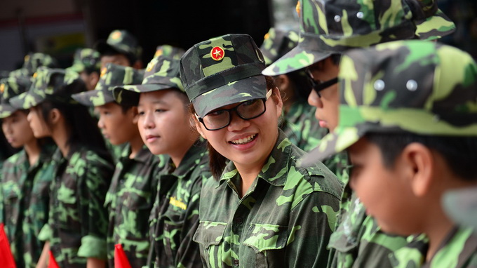 Các thầy cô sẽ tham gia huấn luyện cho các bạn thiếu nhi tham gia Học kỳ quân đội - Ảnh: Quang Định
