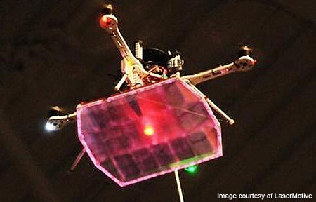 Khác với một số mô hình bay đang được phát triển có khả năng nạp điện nhờ năng lượng mặt trời, các UAV phải hạ cánh để có thể sạc pin hay nạp cho pin nhiên liệu. Mọi thứ sẽ thay đổi với công nghệ đột phá và tiết kiệm do công ty LaserMotive phát triển: Sử dụng laser để cấp điện từ xa cho động cơ và sạc pin trong khi bay cho UAV.