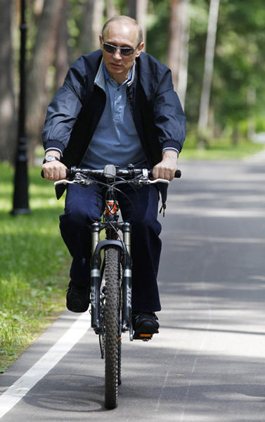 Thủ tướng Nga Putin đạp xe tại dinh thự Gorki ở bên ngoài Mátxcơva, ngày 11/6/2011.