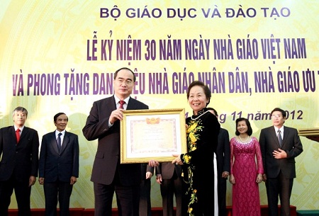 Nhân dịp kỷ niệm 30 năm Ngày nhà giáo VN 20/11, Chủ tịch nước Trương Tấn Sang vừa ký quyết định phong tặng danh hiệu Nhà giáo nhân dân cho 40 nhà giáo và phong tặng danh hiệu Nhà giáo ưu tú cho 570 nhà giáo.