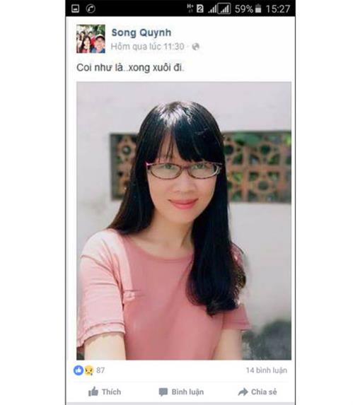 11g30 hôm qua, ngày 18-6, trên facebook của mình, cô giáo Lê Uyên Quỳnh đã viết dòng status "Coi như là... xong xuôi đi". Trưa 19-6, cô là một trong 7 nạn nhân tử nạn trong tai nạn tại đèo Prenn.