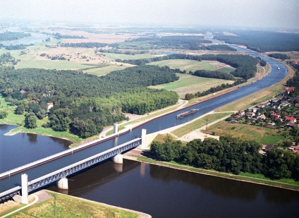Cây cầu liên kết đặc biệt này được bắt tay vào xây dựng từ đầu những năm 1930 nhưng bị trì hoãn do chiến tranh thế giới thứ II cho đến năm 1997. Cuối cùng, thủy lộ này được hoàn thành và mở cửa hoạt động vào năm 2003. Từ đó, Magdeburg trở thành một địa điểm giao thông thú vị thu hút rất nhiều khách du lịch.