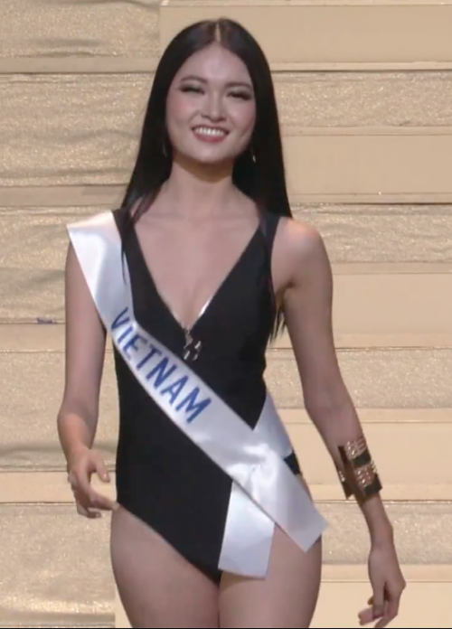 Với thần thái rạng rỡ, tươi tắn, đại diện Việt Nam tự tin catwalk trong trang phục áo tắm một mảnh tông đen. Song, nhiều khán giả chưa thật sự hài lòng khi Thùy Dung diện bộ cánh gam màu kém nổi bật.