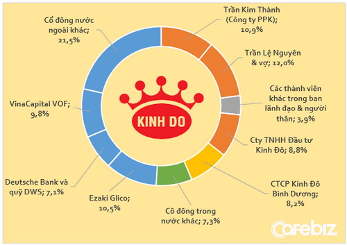 Các nhà đầu tư nước ngoài đang nắm giữ xấp xỉ 49% cổ phần của Kinh Đô với các nhóm cổ đông lớn gồm Ezaki Glico, Quỹ VOF thuộc VinaCapital, Deutsche Bank và quỹ DWS Vietnam Fund.