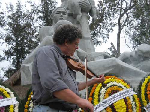 Ông Roy Mike Boehm (người dân Sơn Mỹ, Quảng Ngãi gọi theo lối Việt hóa là "ông Mai"), một cựu binh Mỹ, đang chơi chơi vĩ cầm trong lễ tưởng niệm nạn nhân vụ thảm sát Sơn Mỹ. Ông Mai là nhân vật chính trong một bộ phim tài liệu nổi tiếng về chiến tranh Việt Nam của đạo diễn Trần Văn Thủy: Tiếng vĩ cầm ở Mỹ Lai - Ảnh: Trần Đăng