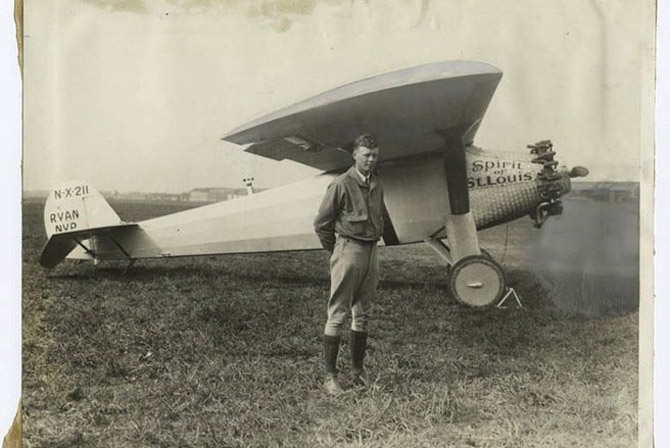 Năm 1927, anh Charles Lindbergh trẻ tuổi đứng bên chiếc máy bay Spirit of St. Louis sau chuyến bay không nghỉ từ đảo Roosevelt Island của Mỹ tới Paris, Pháp.. Từ một nhân vật vô danh, Lindbergh đã trở nên nổi tiếng khắp thế giới sau khi thực hiện thành công chuyến bay này.