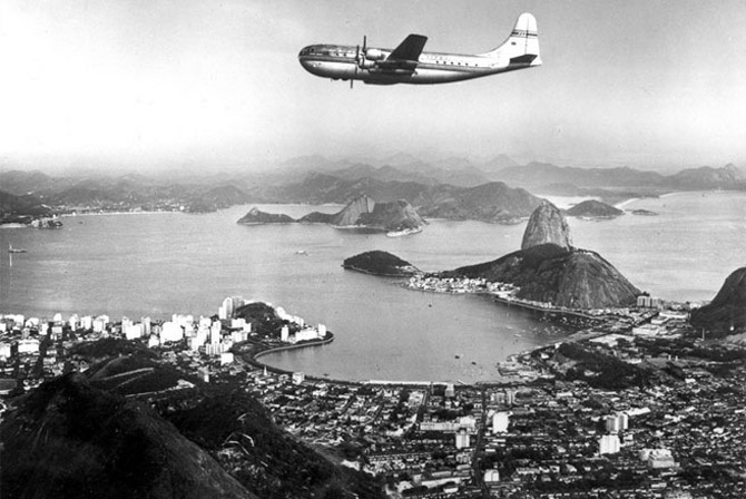 Một chiếc máy bay Boeing B-377 Stratocruiser bay trên bầu trời Rio de Janeiro, Brazil. Ảnh chụp không rõ thời gian.