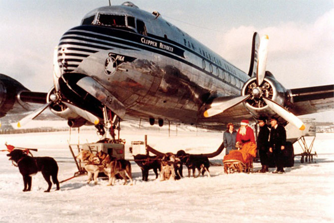 Tháng 12/1946, một ông già Noel nói chuyện với phi hành đoàn của chiếc máy bay DC-4 ở Fairbanks, bang Alaska.