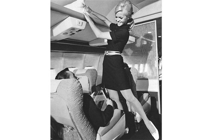 Năm 1967, một nữ tiếp viên của American Airlines trong bộ đồng phục mới. Chiếc váy ngắn trên gối 2-3 inch này được xem là một cuộc cách mạng trong trang phục của các nữ tiếp viên hàng không.