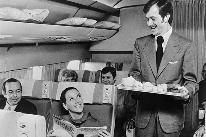 Ngày 15/4/1972, một nam tiếp viên hàng không 26 tuổi mời khách dùng đồ uống trong một chuyến bay ở Mỹ.