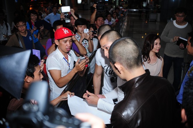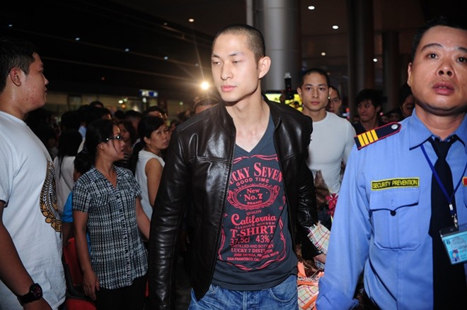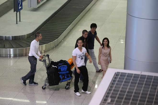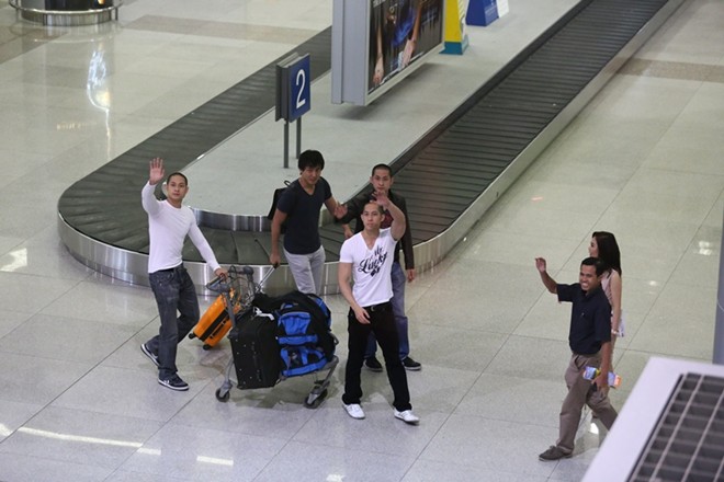 Anh em diễn viên họ Lưu có mặt tại sân bay Tân Sơn Nhất muộn hơn dự kiến gần 2 tiếng đồng hồ vì thời tiết xấu.