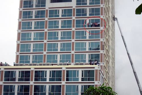 Còn chị Dung đang mang bầu 5 tháng cũng xúc động kể lại chuyện được mọi người giúp đỡ trong đám cháy: “Mình thì không dám trèo ra lan can vì treo như vậy rất nguy hiểm. Lúc ấy dưới tầng 6 có một cái dây thừng, mấy chú công nhân ở dưới đã trèo lên tận tầng 8 để nối dây thừng, bảo mọi người xuống vì nếu xuống được tầng 6 thì ở đấy có một cái sân rất to, mọi người có thể đứng được…”.