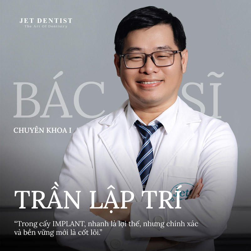 Trong nha khoa hiện đại, cấy ghép Implant được xem là kỹ thuật phức tạp, nơi sự sai lệch dù nhỏ nhất cũng có thể ảnh hưởng đến tuổi thọ răng và sức khỏe lâu dài. Tại Jet Dentist, Bác sĩ Chuyên khoa I (CKI) Trần Lập Trí chính là bảo chứng cho sự an toàn và chính xác tuyệt đối mà mọi khách hàng tìm kiếm tại Jet Dentist.