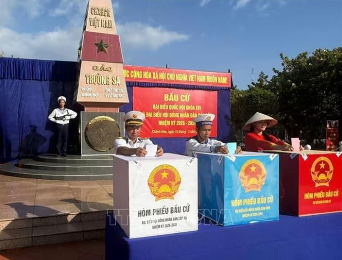 Cử tri đặc khu Trường Sa bỏ phiếu bầu cử Đại biểu Quốc hội khóa XVI và Đại biểu Hội đồng nhân dân các cấp nhiệm kỳ 2026 - 2031, ngày 15/3/2026. Ảnh: Đặng Tuấn/TTXVN