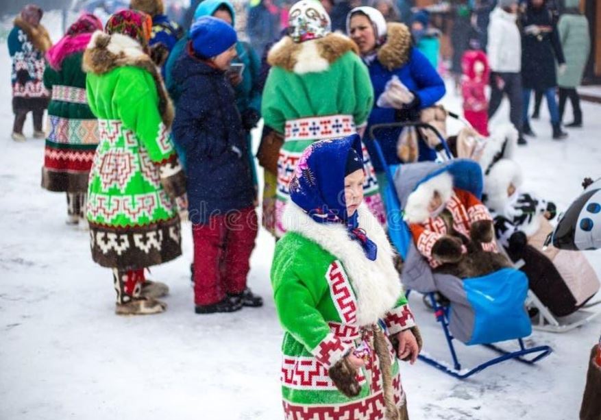 Trang phục phản ánh môi trường lạnh giá. Quần áo truyền thống của người Mansi thường làm từ da thú và lông, được trang trí hoa văn hình học, vừa giữ ấm vừa thể hiện bản sắc tộc người. Ảnh: dreamstime.com.