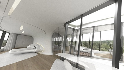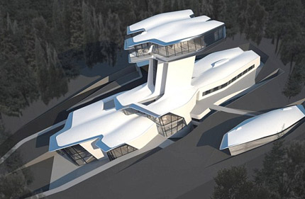 Ngôi biệt thự mới rộng hơn 2.500m2 này được gây chú ý bởi kiến trúc rất lạ mắt, giống như một phi thuyền, cả bên ngoài lẫn nội thất bên trong. Người thiết kế tòa nhà này chính là kiến trúc sư Zaha Hadid nổi tiếng, từng tạo nên nhiều nhiều công trình kiến trúc nổi tiếng như nhà hát lớn ở Quảng Châu (Trung Quốc) và sân vận động ở London (Anh).