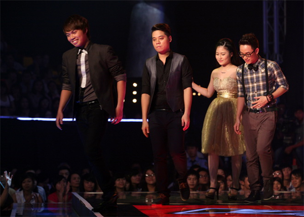 Đỗ Xuân Sơn, Dương Trần Nghĩa, Hương Tràm và Nguyễn Trúc Nhân - 4 thí sinh của đội Thu Minh nhận vé trực tiếp vào vòng trong - Ảnh: Gia Tiến