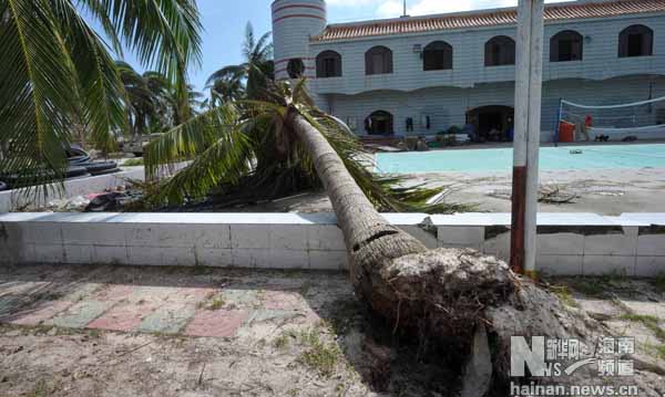 Bão số 10 quật đổ cây cối xung quanh trụ sở Trung Quốc xây dựng bất hợp pháp trên đảo Phú Lâm, Hoàng Sa thuộc chủ quyền Việt Nam.