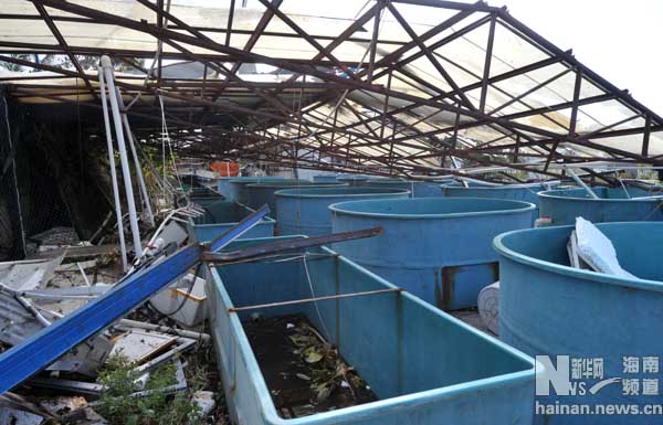 Cơ sở nghiên cứu biển Trung Quốc xây dựng bất hợp pháp trên đảo Phú Lâm, Hoàng Sa bị bão số 10 quật tung mái.