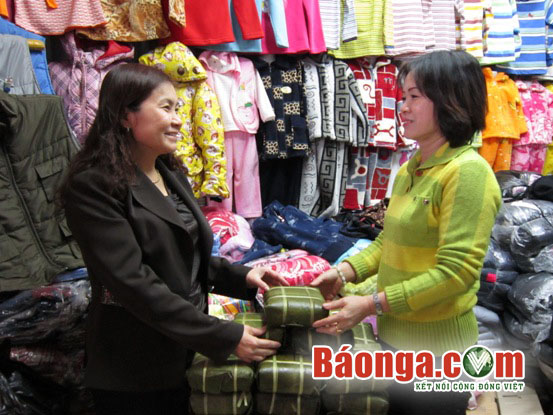 Theo truyền thống hàng năm, chị Nga, chủ doanh nghiệp Navi 96 đi trao quà Tết cho bà con ở chợ