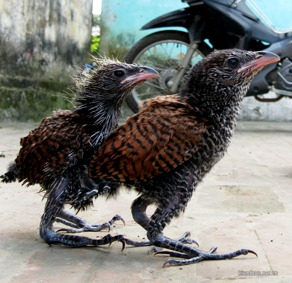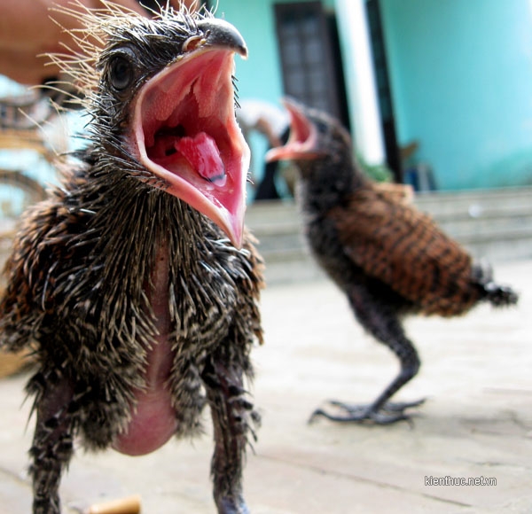 “Kích thước của chúng khá lớn, gấp hàng chục lần các loài chim thường. Tiếng kêu của chúng cũng rất lạ, bình thường chúng phát ra tiếng “phì phì”, “khè khè” như tiếng của rắn hổ mang, còn lúc đói thì phát ra những tiếng kêu rít nghe rất chói tai. Ngoài ra chúng rất háu ăn thịt sống, mỗi ngày ăn hết khoảng gần 1 kg thịt lợn”, anh Tùng cho biết thêm.