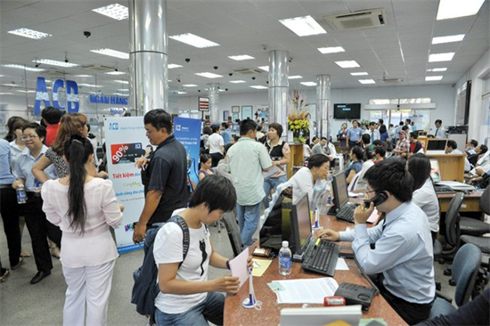 Người dân đến giao dịch tại ACB sau khi nghe thông tin bầu Kiên bị bắt. Ảnh: Kinh Luân