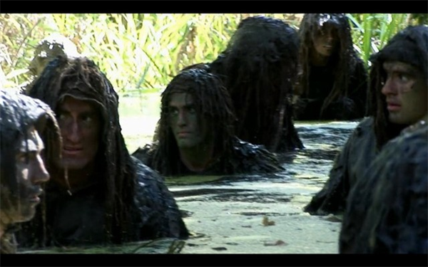 Bài tập khó khăn đầu tiên mà các xạ thủ phải vượt qua là tập… mũi (chịu đựng các loại mùi khó chịu) nhưng thực chất là một bài thử thách ý chí. Các xạ thủ sẽ bị ngâm mình trong một chiếc ao nước “bẩn đến mức huyền thoại” mà họ gọi là: Ao lợn (Pig Pond). Họ cũng phải học cách hòa mình vào cái ao này để đảm bảo mặt nước không bị xao động và lộ vị trí.