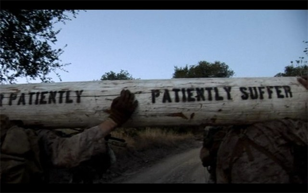 Những người đi quá chậm sẽ bị phạt bằng cách phải mang theo một khúc gỗ nặng 170 pound (khoảng 77kg) trên đó có khắc dòng chữ "Suffer patiently ... patiently suffer" (tạm dịch: Kiên nhẫn chịu đựng) – một trong những khẩu hiệu nằm lòng của những xạ thủ bắn tỉa.