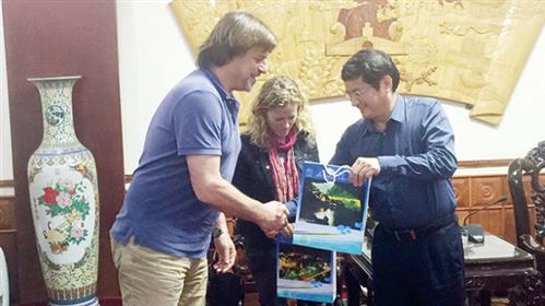 Ngày 25-3, giám đốc sản xuất phim Kong: Skull island (trái) đến chào và cảm ơn tỉnh Quảng Bình đã tạo điều kiện để đoàn phim hoàn thành những cảnh quay cho bộ phim - Ảnh: N.C.A.
