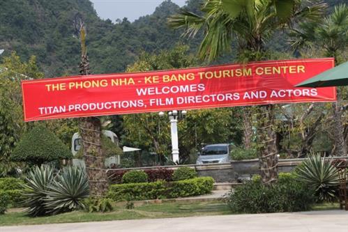 Phong Nha treo bảng hiệu chào mừng đoàn phim Kong Skull island (tức Titan) đến đây quay phim - Ảnh tư liệu.