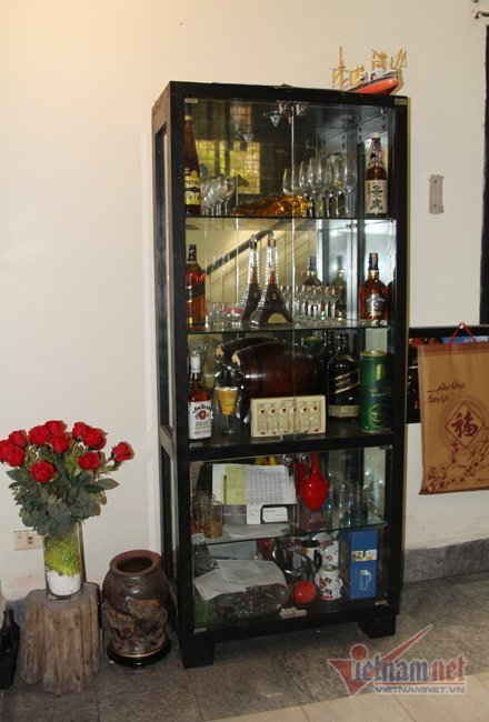 Một góc phòng khách gây ấn tượng với chiếc tủ chứa rượu ngoại.