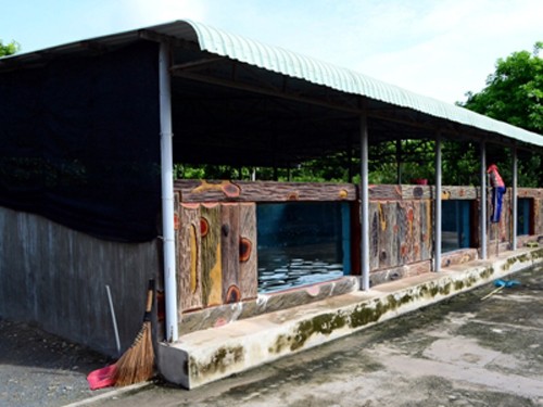 Hồ nuôi cá hải tượng của ông Ninh tương đương hồ bơi dành cho người lớn.