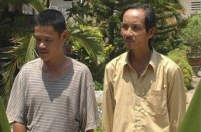Hai nghi phạm trộm chó và “đồ nghề” bị người dân bắt giữ. Ảnh: M.Như Ông Tiêu Viết Thạnh, Trưởng Công an xã Bình Châu, huyện Bình Sơn cho biết, rất nhiều vụ trộm chó xảy ra tại địa phương, dân liên tục phản ánh nhưng tiếc là công an xã chưa bắt được đối tượng nào. “Chỉ tính từ đầu năm đến nay, ở địa phương đã xảy ra 18 vụ trộm chó. Mới đây, khi nhận được tin báo có kẻ trộm chó, công an xã huy động lực lượng đuổi bắt nhưng khi chạy đến nơi vắng thì bị nhóm trộm chó quay ngược lại dùng mã tấu tấn công. Trong đêm tối, lực lượng ít nên anh em công an viên phải bỏ xe chạy vào nhà dân. Lúc quay ra thì chiếc xe máy bị nhóm trộm chó đập bể nát, phải đem đi sửa hơn triệu bạc. Chúng tôi cũng đã đề nghị công an huyện cùng phối hợp để truy bắt các đối tượng trộm chó này”, ông Thạnh nói.