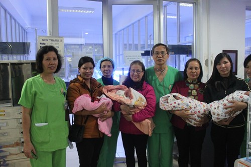 4 cháu bé sinh tư tên Ngao, Sò, Ốc, Hến chào đời tại Bệnh viện Phụ sản Trung ương cuối tháng 11 vừa được xuất viện trong niềm vui của các y bác sĩ và người thân.