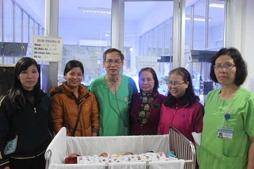 Ngao, Sò, Ốc, Hến trong vòng tay bà nội, bà ngoại và các cô, dì ngày ra viện - Ảnh: Bệnh viện Phụ sản Trung ương cung cấp