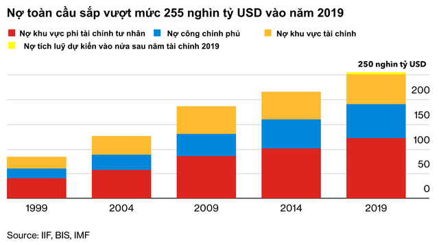 Các công ty "thây ma" ở Trung Quốc, sinh viên Mỹ nợ nần chồng chất, mức thế chấp cao "ngất trời" ở Úc và rủi ro vỡ nợ của Argentina đã đẩy thế giới đứng trên bờ vực của khủng hoảng nợ. Chính sách cho vay được nới lỏng trong cả một thập kỷ khiến cả thế giới đối mặt với khoản nợ chính phủ và nợ hộ gia đình lên tới 250 nghìn tỷ USD. Con số này gần như cao gấp 3 sản lượng kinh tế toàn cầu và tương đương với việc mỗi người trên thế giới, bao gồm trẻ em, phải gánh khoản nợ 32.500 USD.