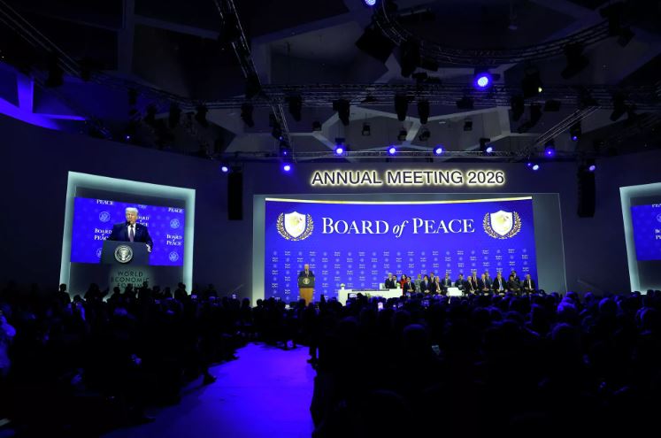 Tổng thống Mỹ Donald Trump phát biểu về việc thành lập Hội đồng Hòa bình tại Diễn đàn Kinh tế Thế giới ở Davos. © REUTERS Denis Balibouse