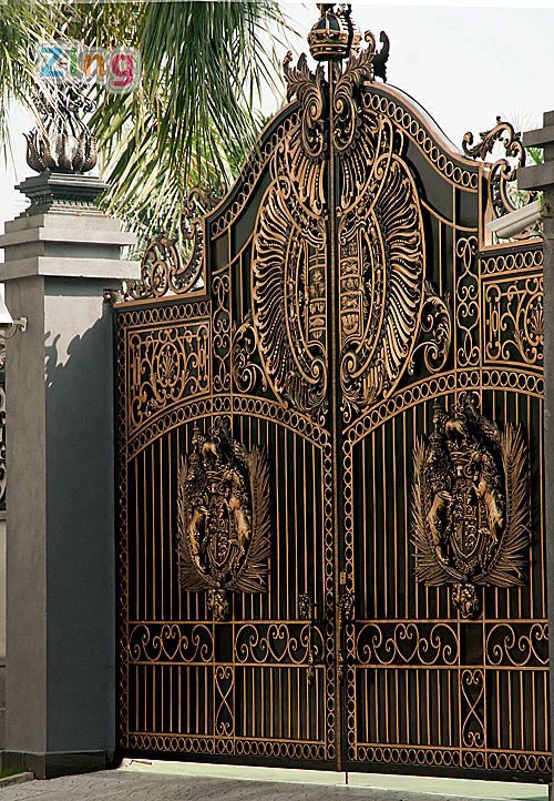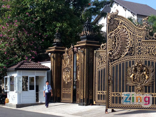 Bởi biệt thự có tới 3 mặt tiền nên phía cổng sau cũng được trang trí khá cầu kỳ. So với mặt tiền, khu vực hậu viên chỉ thiếu một chòi canh gác mà thôi.