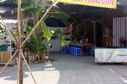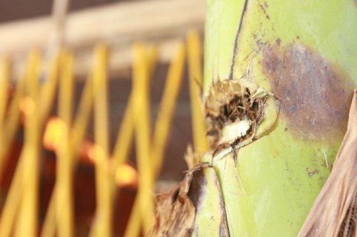 Vết đạn trên thân cây chuối tại quán