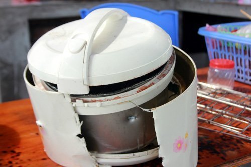 Một nồi cơm điện bị bắn thủng