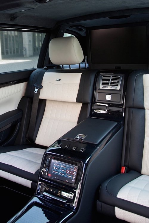 Phần nóc xe được nâng cao so với phiên bản tiêu chuẩn, giúp tạo không gian rộng rãi hơn. Nội thất sang trọng với các chất liệu gỗ và da. Xe cũng được trang bị hệ thống thông tin giải trí tiện nghi bậc nhất. (Ảnh nội thất chiếc xe khác cùng loại).