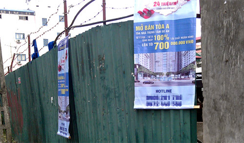 Quảng cáo bán căn hộ cao cấp được treo khắp nơi, với nhiều ưu đãi nhưng vẫn chưa đủ hấp dẫn (ảnh D.A).